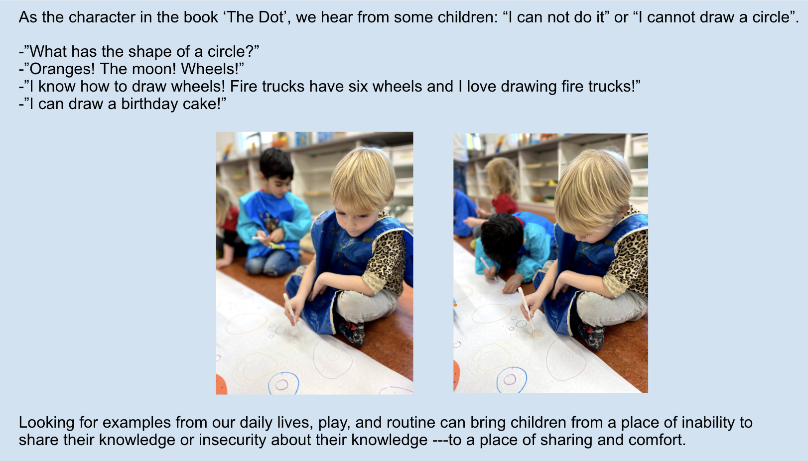 Celebrating Circles (with Shadi) Posted on March 15, 2021 by creativemindsearlylearning 0 Share this: Click to share on X (Opens in new window) X Click to share on Facebook (Opens in new window) Facebook Like Loading... Related