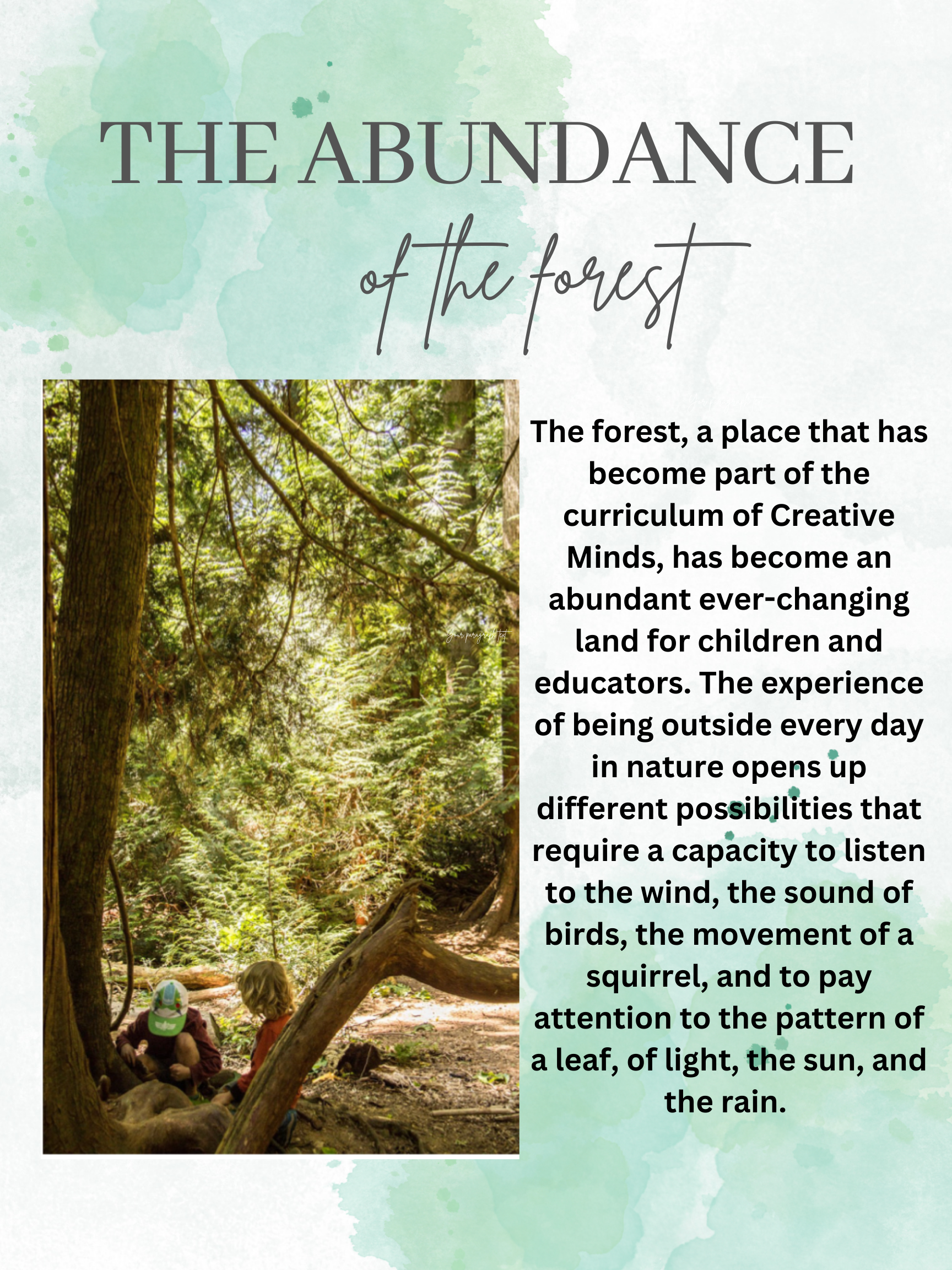 The Abundance of the Forest Posted on June 8, 2023 by creative minds early learning centre 0 Share this: Click to share on X (Opens in new window) X Click to share on Facebook (Opens in new window) Facebook Like Loading... Related