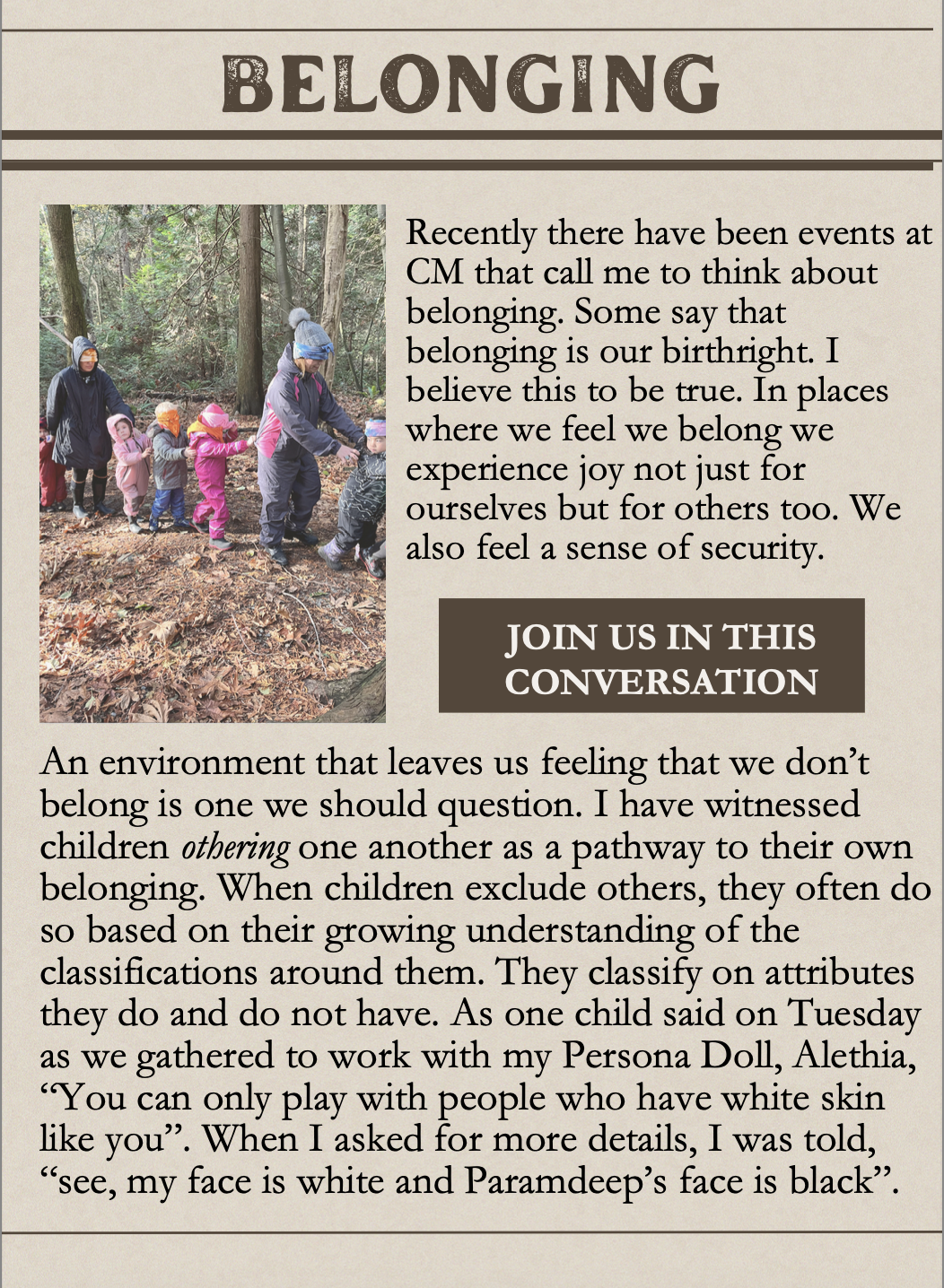 Belonging Posted on November 6, 2024 by creative minds early learning centre 0 Share this: Click to share on X (Opens in new window) X Click to share on Facebook (Opens in new window) Facebook Like Loading... Related