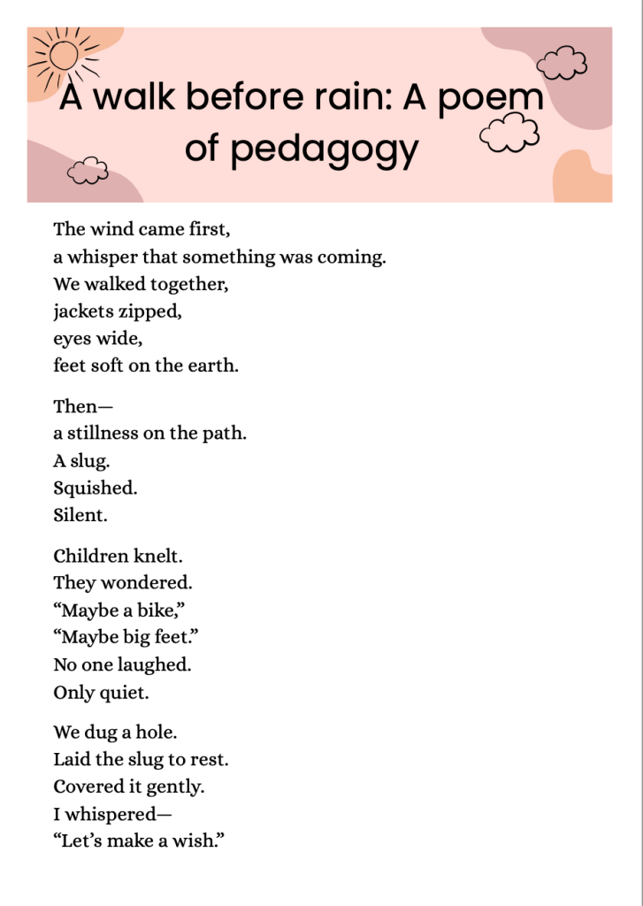 Walk before Rain Posted on April 15, 2025 by creative minds early learning centre 0 Share this: Click to share on X (Opens in new window) X Click to share on Facebook (Opens in new window) Facebook Like Loading... Related