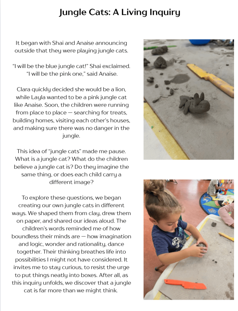 I wonder how might the affordance of materials communicate the extend the children’s idea and stories? I wonder what would happen if there was a forest cat?