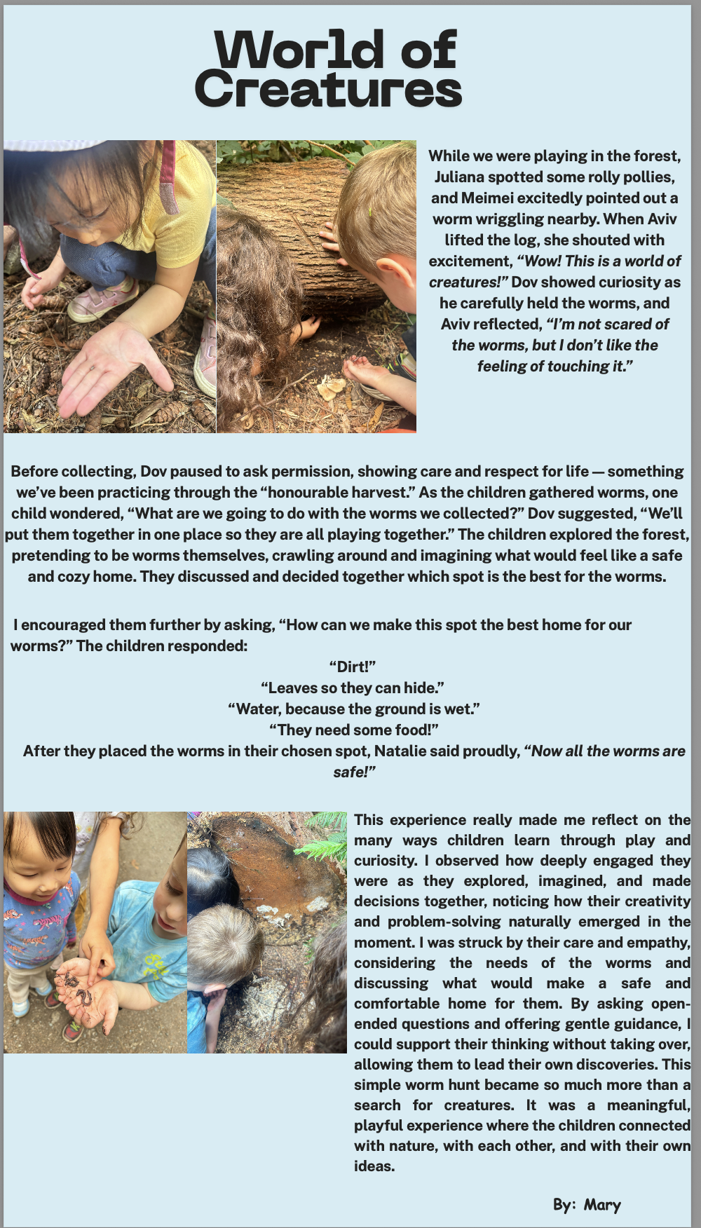 Creatures Posted on September 6, 2025 by creative minds early learning centre 0 Share this: Click to share on X (Opens in new window) X Click to share on Facebook (Opens in new window) Facebook Like Loading... Related