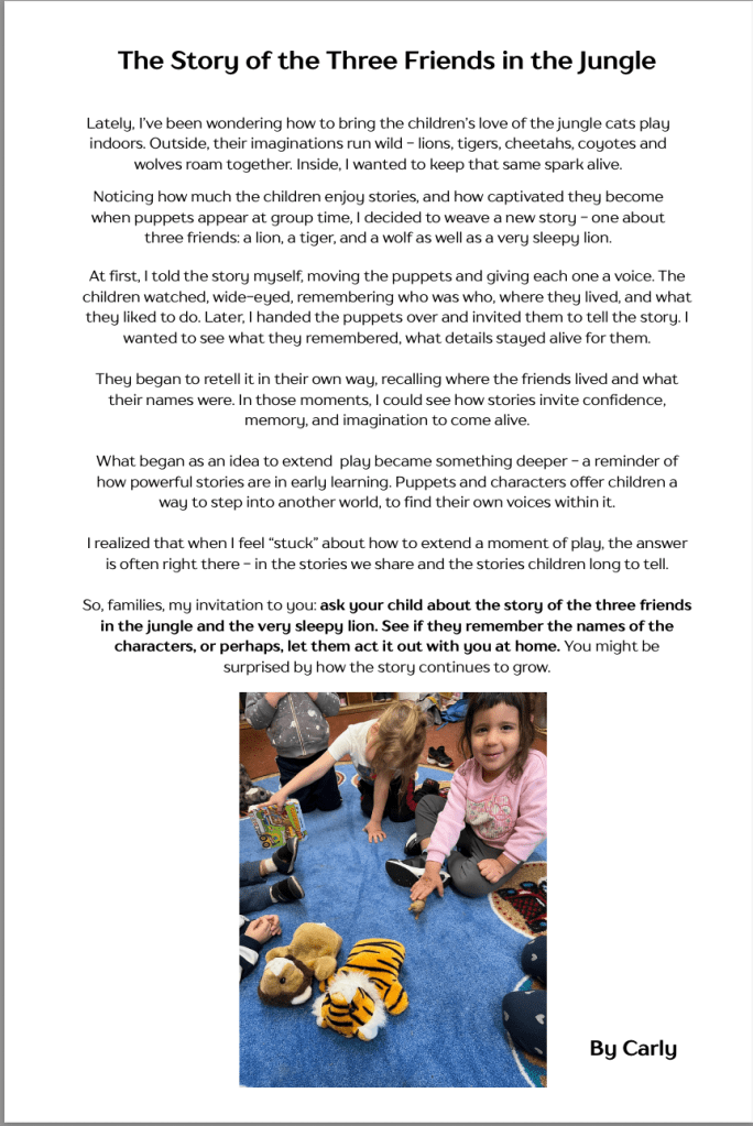 Three Friends…and a story Posted on October 18, 2025 by creative minds early learning centre 0 Share this: Click to share on X (Opens in new window) X Click to share on Facebook (Opens in new window) Facebook Like Loading... Related
