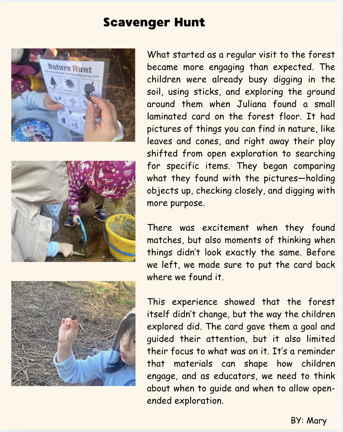 Scavenger Hunt Posted on April 23, 2026 by creative minds early learning centre 0 Share this: Share on X (Opens in new window) X Share on Facebook (Opens in new window) Facebook Like Loading... Related